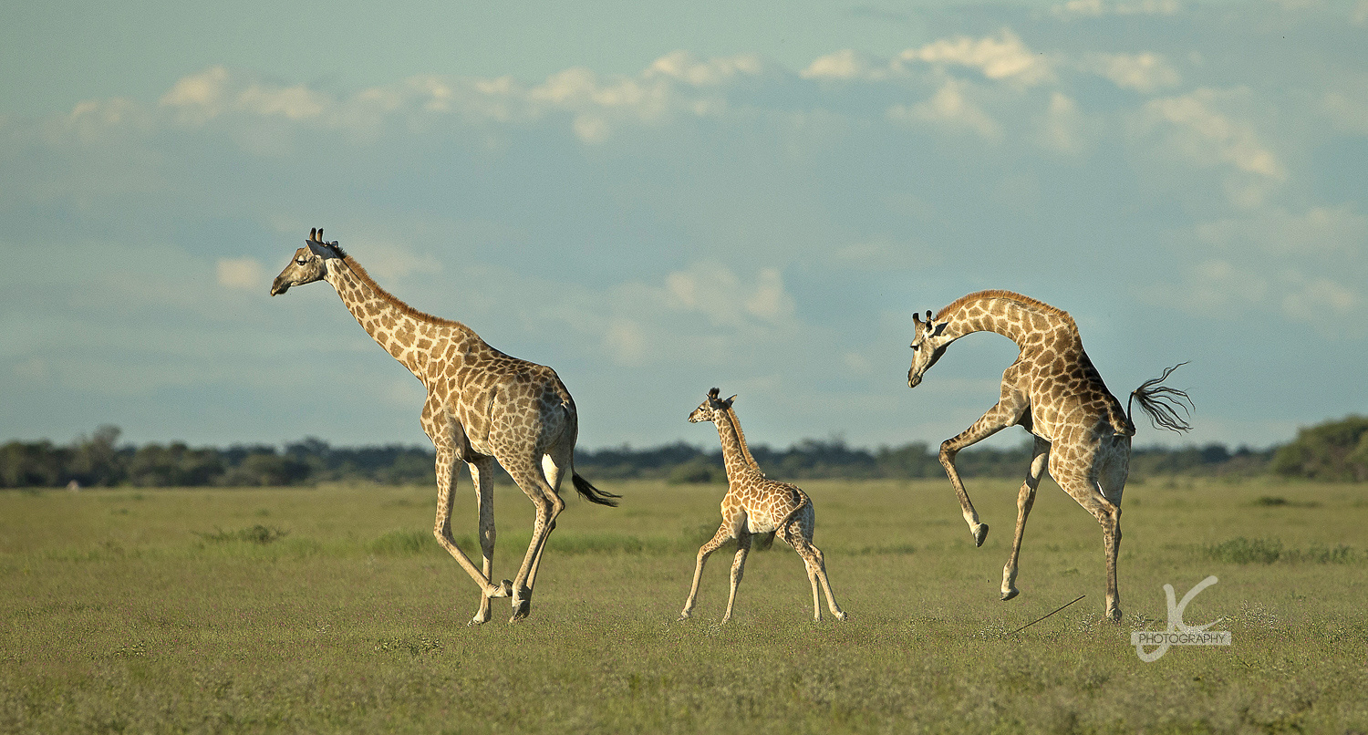 While giraffes usually don’t migrate, there were lots of them this time as well. Right after the mating couple we found a little family running around. It was wonderful to see them this playful, since it looked as if they were showing the kid how to have a good time! Honestly adorable.
