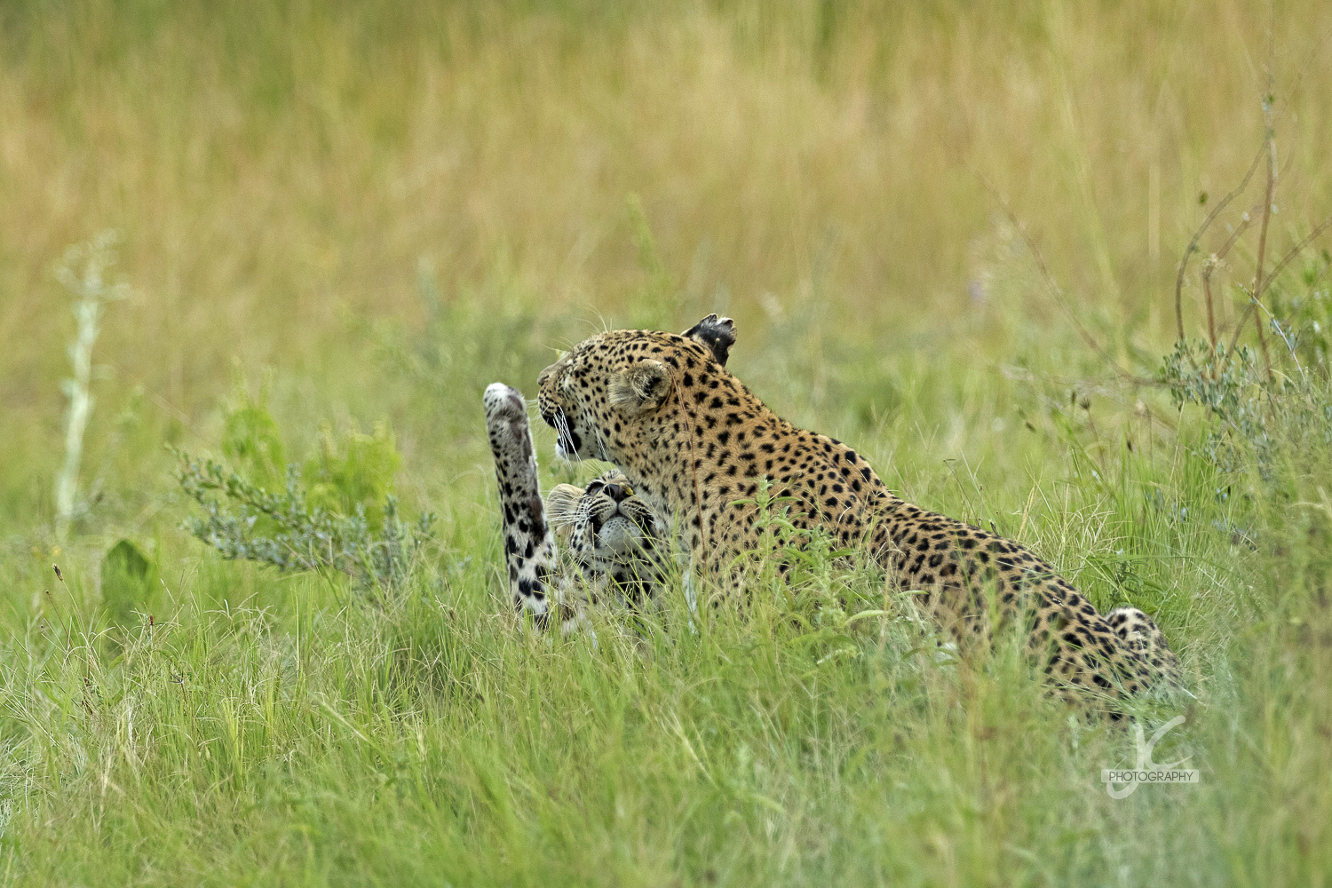 We went to visit friends in Khwai, but it’s also a great place for spotting leopards. We found Mmatsebe and her cub again (you can read their story here). The cub got really big the past couple of months and it was so great to see them both again in a healthy condition. They were very playful and of course all of us wanted to take pictures of that, so sometimes it got a little crowed at certain places in the car…