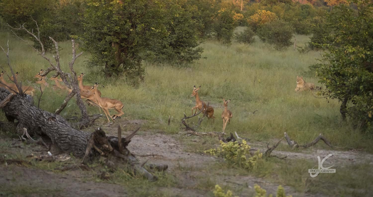 And it’s not only the big cannons (cats and wild dogs for instance), but also the birds making their nests, the blinking cameleon and the majestic strolling elephant in the beautiful settings of Khwai…