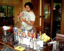 Am Johannestag war es wieder so weit. Insider wissen es, wie letztes Jahr machten wir mit Ralf und dessen Vater unseren beliebten Walnusslikör. Die noch nicht reifen, grünen Walnüsse werden geerntet, gewaschen und zerschnitten. Dann werden Zitronen gerieben und das Ganze wird mit viel Alkohol, Zucker und Gewürzen vermischt. Die Glasballons werden dann für ein paar Wochen in der Sonne stehen und irgendwann wird das ganze gesiebt und in kleinere Flaschen umgefüllt … fertig und lecker 🙂