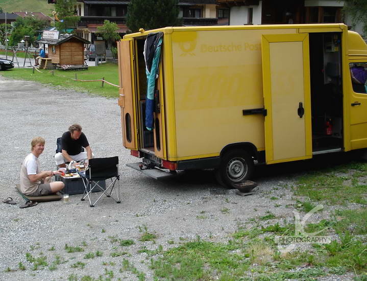 Natürlich war und bin ich hier, um auch den Flugsommer auszukosten. Leider war ja im Mai und Juni das Wetter oft sehr sehr wechselhaft, dass eine längere Planung nicht möglich war. So sind viele Aktionen sehr spontan entstanden. So z.B. die Fahrt mit Kai und Volker an den Hochfelln und danach ins Stubaital. Leider haben wir uns alle drei am Hochfelln relativ schnell versenkt. Stundenlanges hochlaufen zum späten Wiederstart, der dann leider nur noch ein Abgleiter wurde, war die Folge. Besser erging es uns da im Stubaital. Mit fachmännischer Hilfe vom Toni und dessen Schirme von Nova hatten wir einen schönen Flugtag mit einigen Toplandungen und toller Aussicht in das Tal und die darum liegenden Berge. Übernachtet wurde in Kai´s umgebauten ehemaligen Postmobil. Leider kündigte sich am dritten Tag schon wieder eine längere Regenfront an, so das wir den Heimweg antraten.