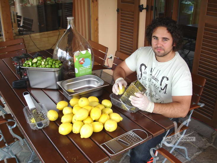 Am Johannestag war es wieder so weit. Insider wissen es, wie letztes Jahr machten wir mit Ralf und dessen Vater unseren beliebten Walnusslikör. Die noch nicht reifen, grünen Walnüsse werden geerntet, gewaschen und zerschnitten. Dann werden Zitronen gerieben und das Ganze wird mit viel Alkohol, Zucker und Gewürzen vermischt. Die Glasballons werden dann für ein paar Wochen in der Sonne stehen und irgendwann wird das ganze gesiebt und in kleinere Flaschen umgefüllt … fertig und lecker 🙂