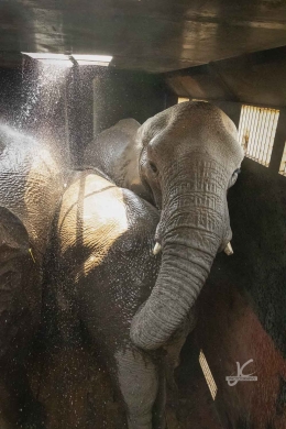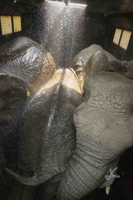 The elephants had been there now for a while, so they started to get a little restless and thirsty. The crew decided to cool them down a bit first before they would leave for the last piece of the journey to release them. Jens decided to take a look inside. Amazing view, don’t you think?