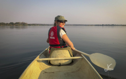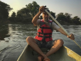 Afterwards we stayed in a little camp closer to town and already direction Mana together with the film crew and Ralph. It was a pretty little camp, with a great view and cozy little tracks going from tent to tent. We decided to go on a canoe trip early in the morning before breakfast the next day. Jens wasn’t too looking forward. He once did a three days canoe trip to Mana and the hippos scared him every once in a while.