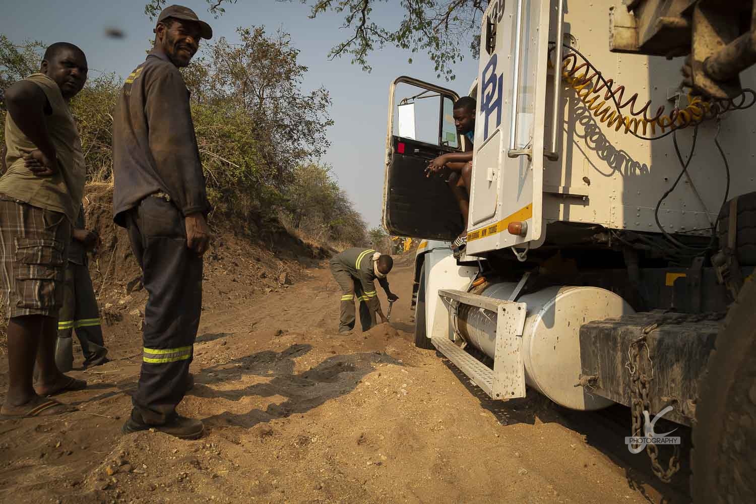 One of them is Pete Clemence. He and his two sons have been taking care of elephants and leading anti-poaching units almost their entire lives. We had a talk with him early in the morning while we were waiting for the elephants to arrive after a long trip. He’s such an interesting guy and only that talk taught me a lot! After some waiting we heard there was a problem with the truck. Something broke and the truck got stuck in a dry riverbed. We decided to drive there and take a look.