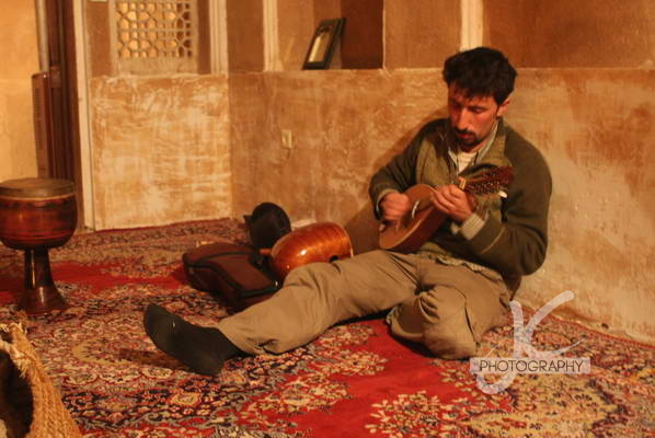 Nach Shiraz und Persepolis, Esfahan ueber Na’in ode Na’en in die Wueste Kavir. Wer googeln will, Garmeh heisst das Dorf. Mitten in der Wueste und dann ist es hier auch noch kalt und ich habe mich in einen kleinen Gasthaus eingemietet. Sehr gemuetlich und einfach, ueberall Teppiche, man laeuft in Hausschlappen oder Struempfen. Vorm Gasthof Dromedare und Ziegen. Der Geruch ist ueberall, ist halt auf dem Land. Natuerlich ist es hier auch Winter und ich bin tatsaechlich der erste Gast seit laengerem. Abends kommt dann doch noch ein Italiener und in der Nacht zwei Englaenderinnen. Alle drei sind mit dem Bus gekommen, sind also nicht sehr mobil. Wir fahren zusammen zu einem Salzsee und zu Duenen, ein gemuetlicher Tag und abens machen alle Musik.