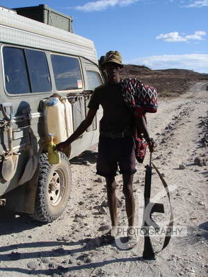 Wir merkten also nachmittags, dass wir von der Strecke her sehr gut unterwegs waren und entschieden uns in Turmi, wo wir eigentlich übernachten wollten, zum weiter fahren, da ich hier wegen des immer möglichen Regen doch relativ zügig durch kommen wollte. Dann im Nichts ein Äthiopischer Polizeiposten. Ein Mann im Zivil, der mir erst mal durchs zeigen seiner Ausrüstung und der weggehängten Uniform glaubhaft versichern konnte, dass er wirklich Polizist ist. Ein kurzer Blick auf unsere Pässe, ein bischen bla bla und dann konnten wir weiter fahren und schneller als erwartet waren wir in Kenia.