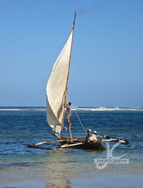Was für uns ein traumhafter Sandstrand ist, ist für den „normalen“ Kenianer ein Teil Lebensgrundlage. Touristen wie wir sammeln schöne Muscheln, Einheimische sammeln Palmenblätter um ihre Häuser gegen den Regen abdichten zu können. Treibgut kann immer irgendwie irgendwann gebraucht werden. Natürlich haben sich die Bewohner der Küstenregion schon auf den Tourismus eingestellt. Täglich bekamen wir Besuch vom „Mango-Mann“, anderen Obstverkäufern und einigen Fischern die uns mit frischen Lebensmitteln versorgten.