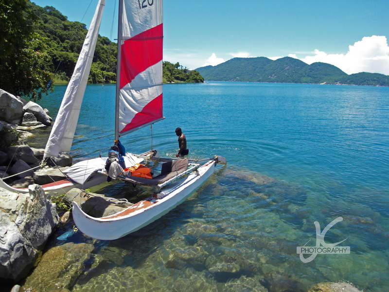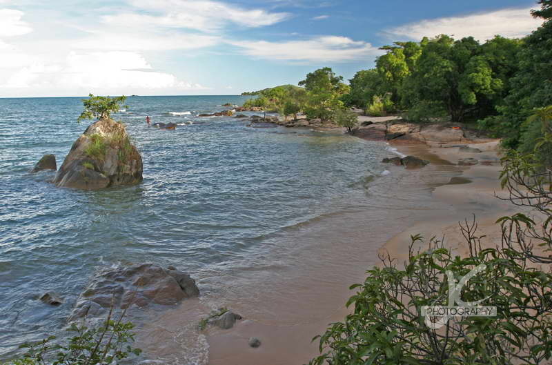 Dort traf ich Chantalle, eine Holländerin, die nach ihrem Medizinstudium nun ein paar Wochen in Malawi im Krankenhaus arbeitete und ein paar Wochen Urlaub dran hing. Auf jeden Fall überredete sie mich zu einer Bootstour mit einen kleinen Katamaran. Ziel waren ein paar Inseln und an der letzten Insel die im Nationalpark lag, noch Schnorcheln/Schwimmen/Fische beobachten. Der Kapitän/Bootsführer zeigte uns unterwegs ein bischen, wie man segelt und ich merkte, dass man als Gleitschirmflieger doch ein bischen Gefühl für den Wind und für das Segeln hatte.