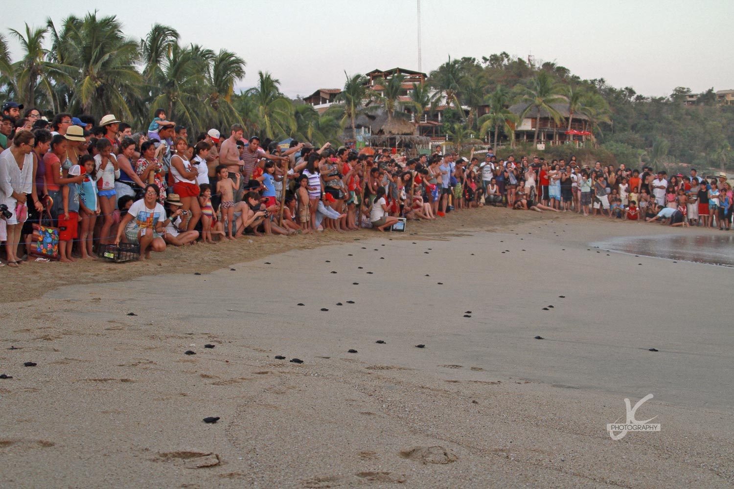 Über Weihnachten und Neujahr sind Magdalena und ich an die Küste geflogen. Zwischen Puerto Escondido und Huatulco habe ich davor schon mit mexikanischen Freunden einen wunderschönen Strandabschnitt erkundet, der mir empfohlen wurde. Bei Mazunte Beach waren Magdalena und ich dann für zehn Tage zum Urlaub machen 🙂 Mazunte ist noch ein kleines verschlafeneres Fischerdörfchen, mit vielen Hippies aus aller Welt, einen Schildkrötenmuseum und noch ohne nennenswerte größere Hotelanlagen. Sehr gemütlich! Einmal in der Woche werden zu dieser Jahreszeit die frisch geschlüpften Schildkröten, deren Eier vorher gesammelt und ausgebrütet wurden, in die Freiheit entlassen (siehe Bilder).