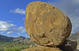 Zurück in den Süden nach Swakopmund fuhren wir am Brandberg und an der Spitzkoppe vorbei erst mal zum Ameib Camp. Dort hat es viele große Granitfelsen und eine Höhle mit Höhlenmalereien der Ureinwohner.