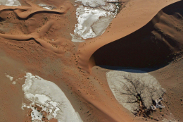 Zurück in Swakopmund erfuhren wir zufällig, dass es in Sossusvlei ein paar Tage vorher geregnet hatte. Das ist eigentlich sehr selten und kommt nur alle paar Jahre vor. So änderten wir unsere Reisepläne und fuhren zu den „Dünen im Wasser“! (siehe Bilder)