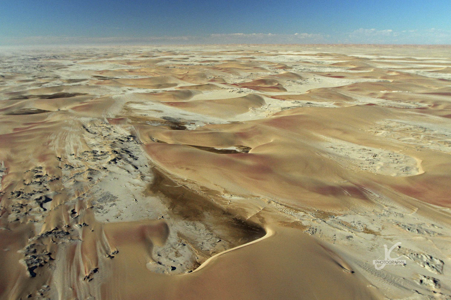 Durch die Wüste und Halbwüste fuhren wir dann weiter über die Wüstenforschungsstation Gobabeb und Walfishbay nach Swakopmund. Dort genossen wir vor allem für ein paar Tage alles was der Ozean frisch an Essen hergibt! Außer dem leider unabwendbaren Besuch in einer Werkstatt für meinen Toyota, machten wir noch einen Wüstenrundflug (siehe Bilder). Magdalena musste dann noch feststellen, dass das Wasser des Atlantiks vor der Küste Namibas doch zu kalt zum Baden ist!