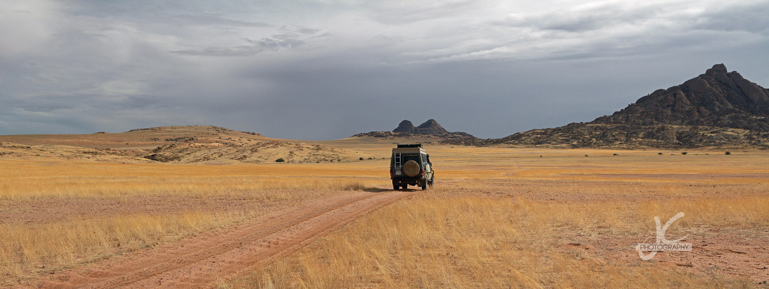 Reise der Highlights… Dieses Jahr wagte ich erneut die Fahrt nach Namibia, allerdings mit Magdalenas Begleitung 🙂 Nach strammen und langen fast 1200km Fahrt von Johannesburg kamen wir am ersten Reisetag abends pünktlich kurz vor Sonnenuntergang zu dem obligatorischen Sundowner in Grunau/Namibia an! Mit den gefahrenen Kilometern hatten wir dann auch den längsten Teil der Anreise hinter uns.