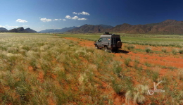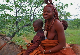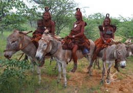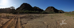 Von Twyfelfontein ging es über Sesfontein nach Opuwo. Unterwegs lernte ich ein deutsches Paar kennen. Beide sind zusammen auf einem Motorrad durch das südliche Afrika unterwegs, sind Journalisten und wollen eine Reportage über die letzten Stämme (tribes) in Afrika machen. Wir hatten alle drei ähnliche Reisepläne /-ziele und da sie auf ihren hoffnungslos überladenen Motorrad nicht so viel Benzin mitnehmen konnten, bot ich mich an, Tankwagen zu spielen. Anders hätten sie keine Chance, diese Strecke zu fahren. So fuhren wir von Opuwo zusammen in den Nordwesten des Kaokofelds Über Orupembe, Blue Drum und Red Drum kamen wir am vierten Tag nach Marienfluss. Die Strecke war sehr abwechslungsreich und durch den vielen Regen ware die Landschaft wahnsinnig grün. Das Motorrad hatte bei einigen Passagen so seine Schwierigkeiten. Zu sandig, zu schlammig, zu steil… aber wir schafften doch die Strecke.