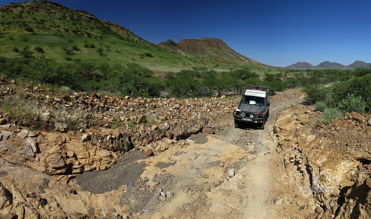 Am darauf folgenden Tag trennten sich unsere Wege. Das Motorrad konnte, wie zu erwarten, nicht über einen Pass fahren. Die Spuren waren zu tief, die losen Steine zu groß, und der Weg oft zu steil, so dass die seitlichen Kisten und Seitentaschen, die sehr tief hingen, in den tiefen Spuren im Weg waren! Wir leerten die Kanister aus dem Auto, die Vorräte gingen sowieso zuneige, befüllten nochmal alle Kanister und Ersatzkanister am Motorrad und dann fuhren wir getrennte Wege. Darüber war ich nicht unglücklich, denn die Beiden waren schon sehr speziell. Den Umweg, der für das Motorrad zu schaffen war und zur Diskussion stand, wollte ich nicht machen. Zwei Tage später war ich wieder in Opuwo, von wo aus ich nun langsam in Richtung Windhoek fahren werde. Dort will ich meine Südafrikanische Familie kommendes Wochenende treffen und zusammen weiter fahren!