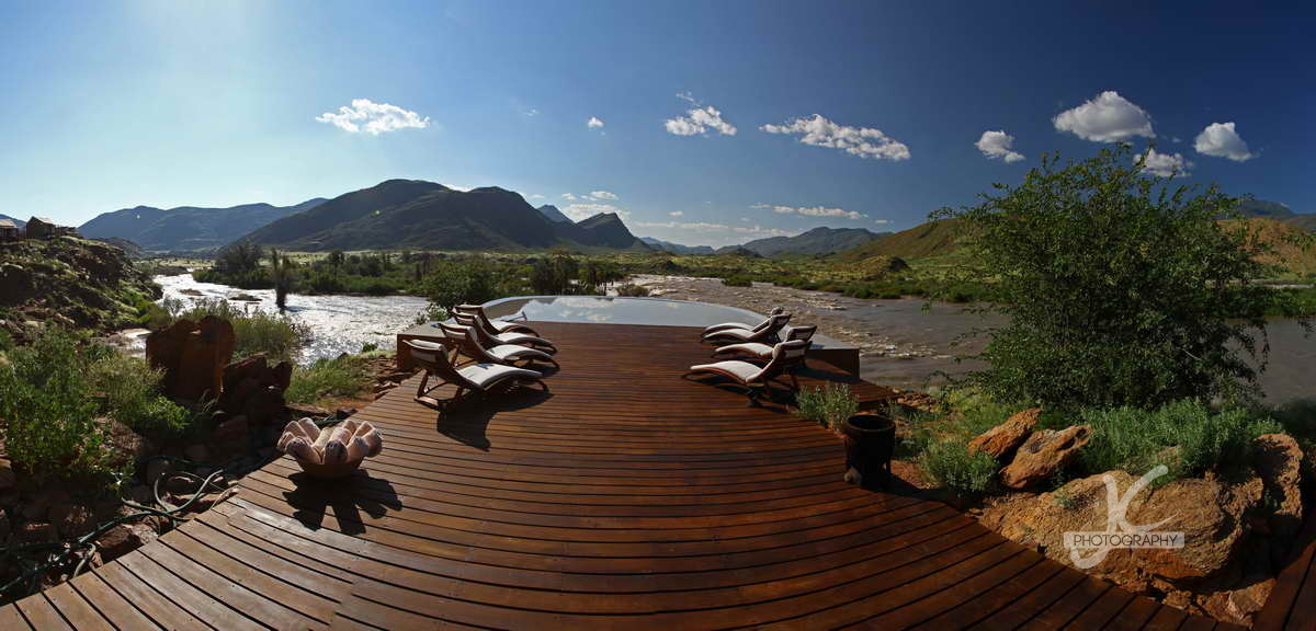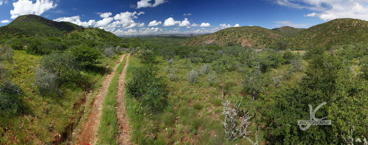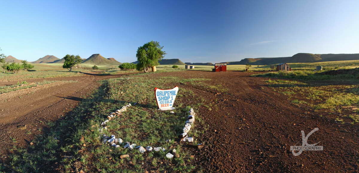 Von Twyfelfontein ging es über Sesfontein nach Opuwo. Unterwegs lernte ich ein deutsches Paar kennen. Beide sind zusammen auf einem Motorrad durch das südliche Afrika unterwegs, sind Journalisten und wollen eine Reportage über die letzten Stämme (tribes) in Afrika machen. Wir hatten alle drei ähnliche Reisepläne /-ziele und da sie auf ihren hoffnungslos überladenen Motorrad nicht so viel Benzin mitnehmen konnten, bot ich mich an, Tankwagen zu spielen. Anders hätten sie keine Chance, diese Strecke zu fahren. So fuhren wir von Opuwo zusammen in den Nordwesten des Kaokofelds Über Orupembe, Blue Drum und Red Drum kamen wir am vierten Tag nach Marienfluss. Die Strecke war sehr abwechslungsreich und durch den vielen Regen ware die Landschaft wahnsinnig grün. Das Motorrad hatte bei einigen Passagen so seine Schwierigkeiten. Zu sandig, zu schlammig, zu steil… aber wir schafften doch die Strecke.