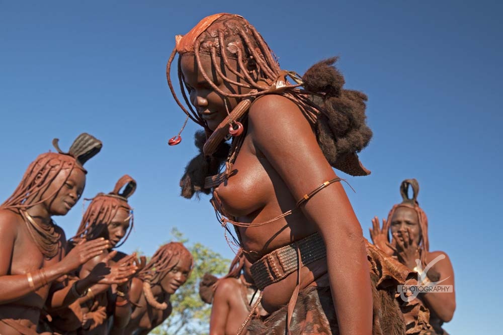 Kaokoveld ist gleichzeitig faszinierend und respekteinflössend. Die Weite, Stille, Farben bleiben uns noch lange in Erinnerung. Tagsüber sind wir dort herumgelaufen, bis es zu heiß wurde, dann weitergefahren, bis wir ein schönes Plätzchen zum Wildcampen fanden. In dieser Gegend wohnt seit jeher das Himba-Volk. Die Frauen sind mittlerweile ein beliebtes Fotomotiv jedes Namibia-Reisenden geworden. Sie lassen sich aber nicht mehr kostenlos fotografieren, sondern verlangen Geld dafür. Die Frage, ob man für Bilder bezahlen soll ist ziemlich kontrovers. Jedenfalls wollte Nick unbedingt einige Fotos machen. Die Gelegenheit dafür ergab sich in der Nähe von einen unserer Camping-Plätze, Marble Camp. Dort wurden wir in Begleitung eines Einheimischen in ein Himba-Dorf geführt. Nick hatte einen kleinen Drucker dabei, mit dem er die Bilder unmittelbar ausdrucken konnte. Die Dorfbewohner waren von den geschenkten Fotos sehr begeistert und verlangten von uns kein Geld.