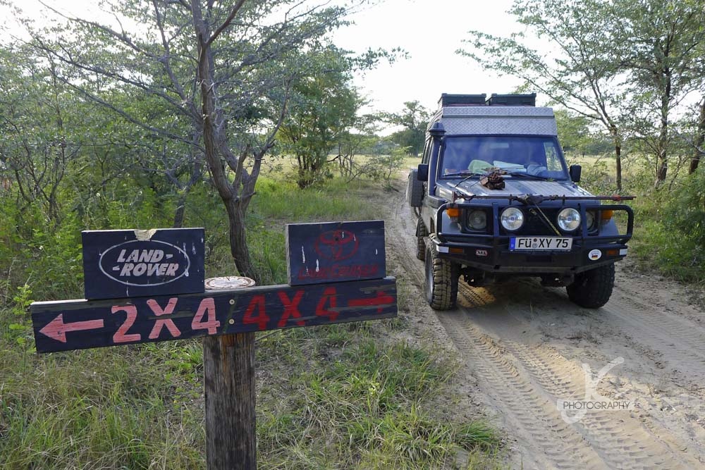 Nach einigen Tagen haben wir uns auf den Weg gemacht und sind durch den Caprivi-Streifen nach Namibia eingereist. Dann ging es ziemlich zügig nach Opuwo, wo wir uns mit Dee und Nick wieder treffen wollten. Geplant war eine Tour durch das Kaokoveld, eine sehr einsame Gegend, die man aus Sicherheitsgründen am besten mit zwei Fahrzeugen erkundet. Opuwo ist das letzte Städtchen in dem man noch Reserven auffüllen kann. Nordwestlich davon gibt es keine Versorgungsmöglichkeiten mehr. Es ist also kein Ausflug, der leicht unternommen werden kann. Wir bereiteten uns bestmöglich vor: Ausgestattet mit Diesel, Wasser und Lebensmitteln fuhren wir Richtung Hartman-Tal und weiter zum Marienfluss.