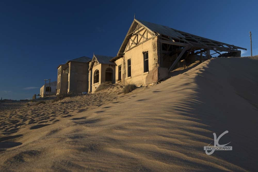 Ein Hauptgrund dafür war eine Austern-Farm. Im ersten Stock wurde dort ein simples Restaurant eingerichtet. Das Menü besteht ausschließlich aus Austern. Man kann bloß wählen: pur oder mit Parmesan überbacken. Wir waren die ersten Gäste und blieben so lange, bis wir auch die letzen Gäste waren. Nach 30 Austern (pro Person!) und drei Flaschen Weißwein schlenderten wir fröhlich durch das Städtchen und sahen uns einige der alten deutschen Prachthäuser an. Am nächsten Morgen, noch vor Sonnenaufgang, besuchten wir die verlassene Diamantenmiene Kolmanskop.