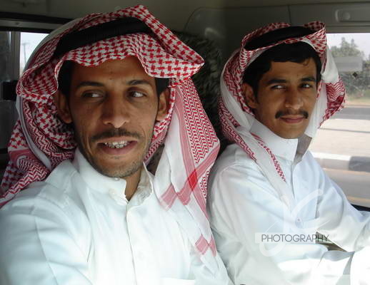 Fast überall werde ich gestoppt, Passkontrolle, Fahrzeugpapiere, mit Händen und Füßen erklären, wo man hin will, was man machen will, dann wird ab und zu noch mit irgendwelchen Leuten per Telefon Rücksprache gehalten. Dann darf ich weiter fahren. Einmal mußte ich mit auf die Polizeistation und nach der Befragung und Telefonaten darf ich weiter. Am dritten Tag, vormittags, kurz vor Najran, hält mich die Polizei mitten auf der Straße auf. Nach dem üblichen Prozedere ging es nur noch in Begleitung eines Polizeiautos weiter. Trotzdem an jeden Check Point ein Stopp und immer die gleichen Fragen. Am letzten Check Point, kurz vor Najran (ich wusste nicht, dass es der letzte Check Point vor Najran ist) war ich schon ziemlich genervt und versuchte den Polizisten beizubringen, dass ich an jedem Check Point halten muss und er doch einfach den letzten Check Point vor ein paar Kilometern frangen soll. Die haben alle Daten aufgeschrieben (natürlich alles im sehr freundlichen Ton, aber bestimmend). Da kam dan ein „Zivilist“ dazu, der ein bischen englisch sprach. Ich erklärte ihm meinen Ärger und das ich schon ziemlich angepisst bin. Er versuchte nun zu vermitteln. Ich erklärte auch, dass ich nur einen Tag in Najran bleiben will, mir dort die Stadt anschauen, Lebensmittel kaufen und dann weiter in die Wüste will. Nach längerer Diskussion mit den Polizisten, erklärte sich Ali (so heißt der Zivilist) bereit, mir die Stadt zu zeigen und mit mir einkaufen zu gehen. Dann fuhr er vorweg, dann ich und hinter mir ein Polizeiauto ins Shopping Center. Das Polizeiauto war nach dem Einkaufen weg. Dann heim zu Ali (Ali Rashed Mohammed Hashan Al-Monajjem Al-Yime (der volle Name)), das übliche, Tee, dann kommt noch jemand aus der Familie dazu (natürlich nicht seine Frau, die macht nur den Kaffee und den Tee, sondern sein Bruder). Mein Auto lassen wir stehen und zu dritt fahren wir zum Markt und den Sehenswürdigkeiten der Stadt. Im laufe der Zeit erkläre ich, dass ich ja eigentlich in die Wüste will. Ali dann immer „don´t worry“.