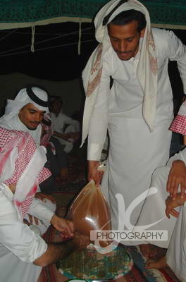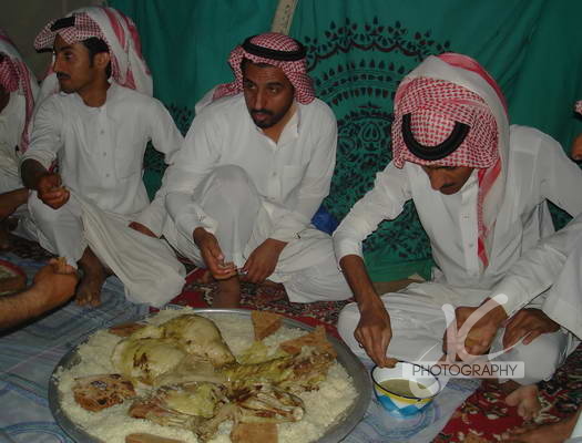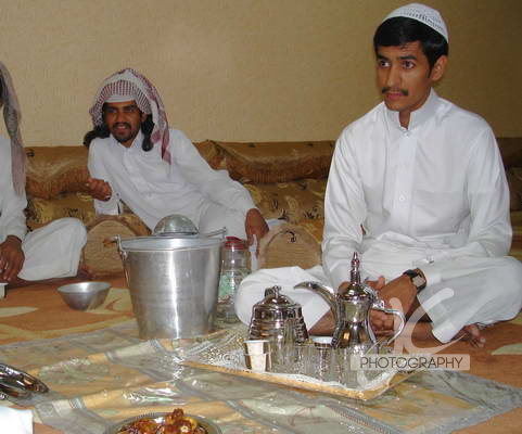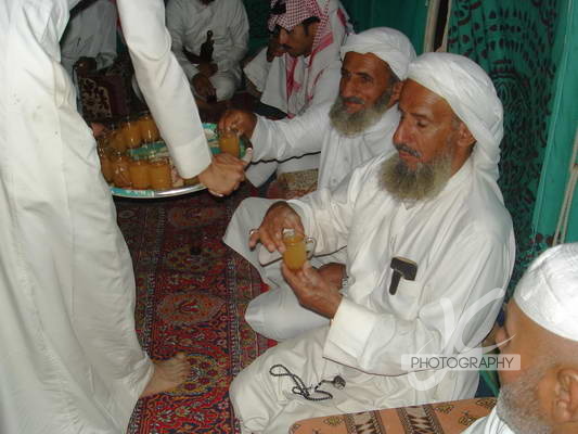 Es waren wirklich viele Eindrücke, die ich in der Woche und den vier Tagen in Najran mitnehmen konnte. Vieles war so fremd oder kommt uns so fremd vor, dass es in unserer „Zivilisation“ nur Kopfschütteln hervorrufen kann. Tagsüber waren wir ja oft in Najran zum Essen bei irgendwelchen Familienmitgliedern. Dort versammelten sich dann nach und nach die Männer in einem großen Raum. Erst gab es arabischen Kaffee, nach zwei bis drei Täschen sollte man ablehen. Dann gab es Tee für alle und evtl. getrocknete Datteln. Irgendwann klopfte es an einer Tür oder es klingelte eine Glocke. Der Hausherr geht dann, öffnet eine Tür und holt ein Tablett mit dem Essen. Die Frauen sind praktisch für alle Fremden nicht sichtbar. Das wurde nicht extra wegen mir gemacht, dass ist immer so. Frauen dürfen auch nicht alleine Auto fahren, sondern müssen wenn nicht vom Mann, mindestens von einem Familienmitglied gefahren werden. Die Frauen im Süden haben, wenn man mal eine auf der Straße gesehen hat und das war selten, immer „Vollvisier“ getragen. Das bedeutet, neben dem normalen Kopftuch noch einen Schleier, so dass keiner das Gesicht sehen kann. Ältere Frauen hatten ab und zu einen Sehschlitz, jüngere Frauen einen schwarzen Schleier. Man sah kein bischen Gesicht oder Haut und natürlich darf man sowas auch nicht fotografieren.