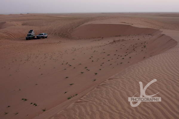 Am Check Point kommen wir diesmal durch und nach einer Stunde Fahrt weg von der Straße auf Sandpisten, dann nur noch Sand ohne Piste, kommen wir an eine Stelle, wo schon ein paar Saudis am Lagerfeuer sitzen und Tee trinken. Wir werden herzlich begrüßt, ich werde vorgestellt, einige können englisch und es wird ein sehr sehr netter Abend. Ich dachte zuerst, die machen den ganzen TamTam nur für mich, mir wird aber erklärt, dass sie sich mehrmals in der Woche irgendwo in der Wüste treffen und zusammen essen. Irgendwann mitten in der Nacht ziehen wir die Teppiche, die ums Feuer ausgelegt waren, zwischen die Autos, packen unsere Schlafsäcke darauf aus und schlafen im Freien mit herrlichen Sternenhimmel ein.