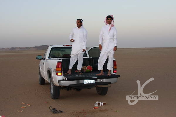 Wir fahren Spähtnachmittags mit zwei Autos in Richtung Rub’Al-Kali, die große Wüste Saudi Arabiens oder auch „Leeres Viertel“ genannt. Ali bei mir im Auto, sein Bruder Mahan und ein weiterer Verwandter im anderen Auto. Allerdings macht uns der nächste Check Point stadtauswärts einen Strich durch die Rechnung. Wir werden wieder rausgezogen. Dann das gleiche Spiel: Pass, Autopapiere, Versicherung, Telefonieren und irgendwann dürfen wir dann weiter. Allerdings kommen wir nicht sehr weit. Nach einem Kilometer holt uns ein Polizeiauto ein, stoppt uns, wieder lange Diskussionen, Funkverkehr der Polizisten, dann wieder zurück zum letzten Check Point. Dort wieder warten und Diskussionen. Irgendwann darf ich dann gehen, aber Ali soll noch bleiben. Er hat sich nun verdächtig gemacht. Was macht er mit einem Touristen zusammen in einem Auto? Warum kümmert er sich um mich? Ich bleibe natürlich da und irgendwann, es ist schon dunkel, müssen wir in die Stadt ins Polizeihauptquartier. Dort muß Ali zum Polizeichef. Ich soll außen warten. Irgenwann wurde es mir zu bunt, ging ans Tor der Station und wurde auch zum Polizeichef geführt. Dort hat man sich nun geeinigt, daß Ali für mich für die Dauer meines Aufenthaltes in Najran verantwortlich ist und er sich mehr oder weniger für mich verantwortlich macht. Sollte mir was passieren, wird Ali zur Rechenschaft gezogen. Es wurde ein langes Schreiben aufgesetzt, dass dann mit Unterschrift und Fingerabdruck besiegelt wird, dann können wir endlich gehen. (kleine Randnotiz: in allen bisher bereisten islamischen Ländern war die Gastfreundschaft sehr sehr ausgeprägt und man zeigte sich überall verantwortlich für seinen Gast (mich). Einmal strauchelte ich in den Bergen beim Spaziergang zu einer Quelle und ich stürtzte. Mein „Gastgeber“ hätte es fast noch geschafft, sich zwischen mich und den Steinen zu werfen, nur damit ich keinen Kratzer ab bekomme!!!)
