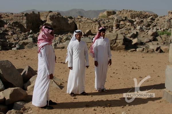 Noch eine kleine Bemerkung: die Polizisten waren immer sehr freundlich und die Diskussionen wurden nie laut. Die Saudis untereinander (Polizisten wie Zivilisten) begrüßen sich so gut wie immer mit dem Bruderkuss und einer längeren Grußformel. Oft wurde sich dafür entschuldigt, dass ich kontrolliert wurde. Auf den Polzeistationen gab es immer Tee und getrocknete Datteln für mich. So ein Reisender wie ich ist für diese Polizisten etwas aussergewöhnliches. Wenn, dann kommen sehr sehr selten die Touristen in Gruppen und im Bus und nie alleine. Später erfahre ich, dass aufgrund der Vorkommnisse im Jemen und diversen Ereignisse im Land, eine spezielle Polizeieinheit sich nur um die Touristen kümmern muß und sie beschützen soll, deshalb auch die Telefonate.