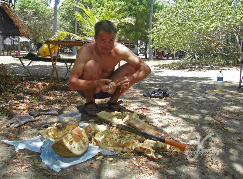 zu Bild 6: Jackfrucht auf machen und die Frucht raus bekommen ist so ziemlich das Klebrigste, was ich je gemacht habe … konnte die klebrige Masse nur noch mit Bremsenreiniger vom Messer und meiner Haut bekommen!