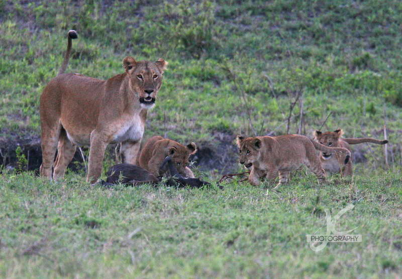Nachmittags fuhren wir dann an einen Zeltplatz in der Nähe vom Westeingang in die Serengeti. Am nächsten Tag ging es dann gegen Mittag in den Nationalpark. Der große Unimog von Quinton ist allerdings auf Piste und im Gelände sehr langsam unterwegs, so dass wir abends nicht den offiziellen Zeltplatz erreichten und wild im Park campen mussten (ist natürlich strengstens verboten). Insgesamt war ich drei Tage in der Serengeti und es war sowohl landschaftlich, als auch von den Tieren sehr abwechslungsreich. Glücklicherweise sahen wir viele Löwen mit Jungen und zum erstenMal einen Serval (siehe Bild).