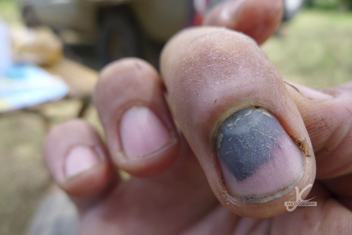 Also aussteigen, die Sandbleche ab, den Wagenheber platzieren und los geht es! Zum Glück waren um das Auto ein paar tote umgestürzte Bäume. Dort konnte ich dann dickere Äste mit der Axt abschlagen und unter die aufgebockten Reifen wuchten. Das Wasser dieses Schlammlochs ging genau bis zur Unerkannte der Autotür. Wenn ich die Tür nicht vorsichtig zuschlug, schaufelte ich Wasser in das Auto 🙁 Und in der Hektik ist das leider auch oft passiert.