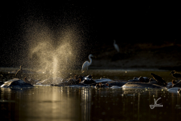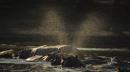 As you can see I have to position myself mostly in the sun, since the pools dried out quite a bit. And in these extremely hot temperatures, that is really a challenge! One day I decided to go to Long Pool and try to make photos of the hippos spraying water against the light. I figured I had to go there already in the afternoon, so they would get used to me. So I took all I needed (mat, water, cameras, binoculars) and I positioned myself on a sand bank. It took some sweat, concentration and patience, but I really enjoyed it. The spray sometimes has the form of a heart, don’t you think?