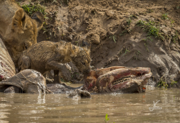 One day I found a shy pride of lions at Mana mouth. They killed a buffalo and were feasting on it. A meal full of mud since the carcass was laying in the water. It was not easy to take pictures of them, because they were very cautious.