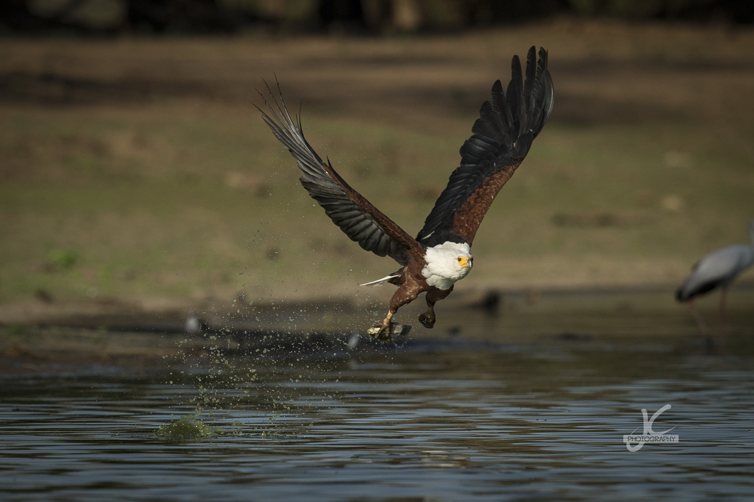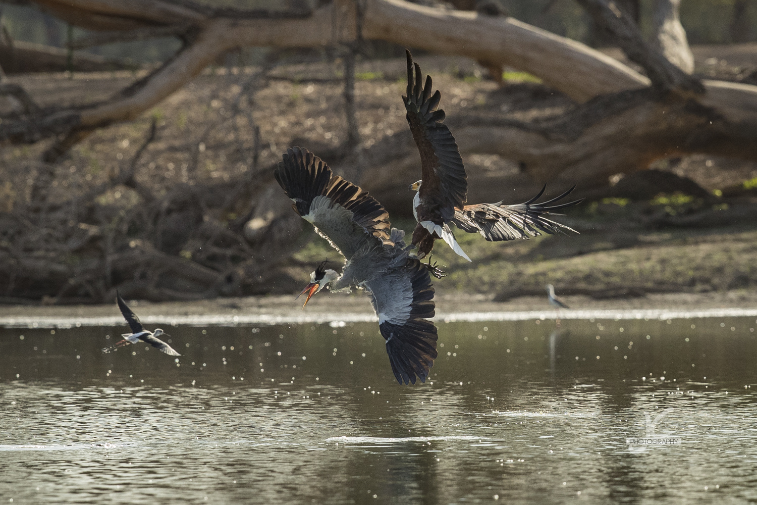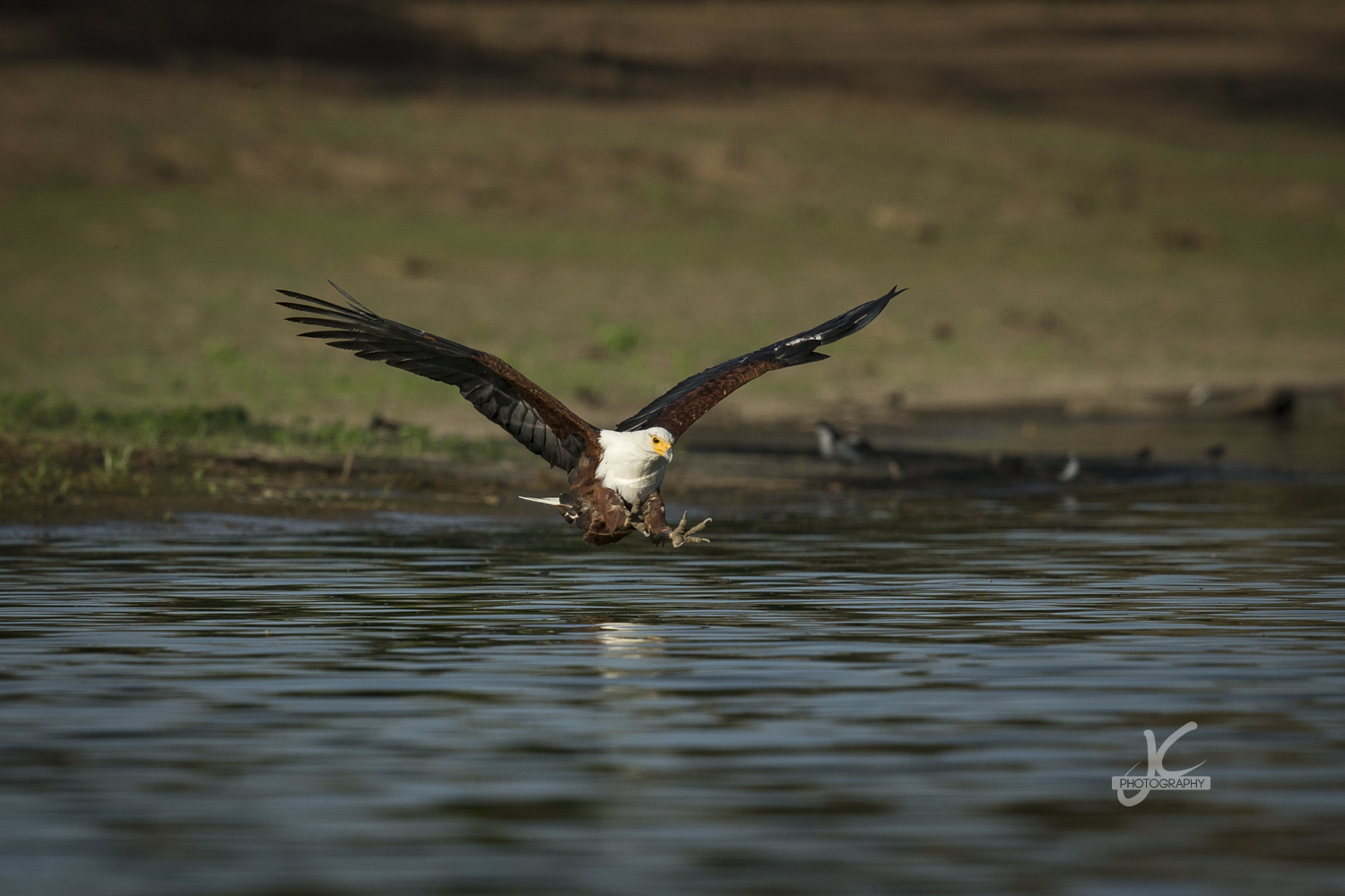 Back in the park, I spent quite some time at Chisasiko Pool this time and saw some nice sightings, like a fish eagle catching a fish and attacking a grey heron, a baboon with a midlife crisis and the beautiful african skimmers. The panned photos are spoonbills.