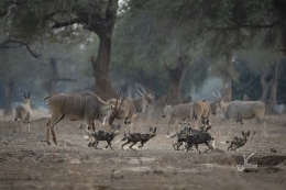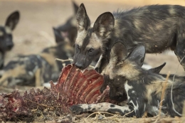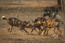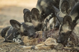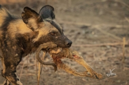 All of a sudden they saw some impala close by, went for it and as wild dogs are pretty successful hunters, they also got the impala. So they left the rests of the second baboon or took what they could carry and went on to the unfortunate impala.