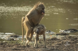 Another day I went to one of the remaining waterholes and also that turned out to be a rather entertaining day. Lilac breasted rollers, crocs in an ambush trying to get lucky with some impala, baboons entertaining themselves (and me), a yellow billed stork catching a frog and an impala who wasn’t very happy with baboons either. Jep, the baboons aren’t too popular this time…