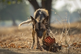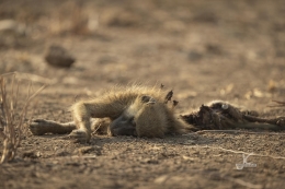 On a brighter note, I had again some great sightings and one day in particular was really great. I was with the wild dogs early morning when they left for hunting. They tried their luck on some eland antelopes, but weren’t very successful. A bit later however they managed to get two baboons (these guys who went for our tent got what they deserve!). First a smaller one and afterwards a bigger guy.