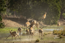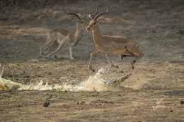 Another walk brought me to jumping impala’s and waterbucks. It’s amazing how fast they can be and how high they can jump. And normally without too many mid air collisions. In the second picture underneath their flawless coordination turned out not so flawless after all…