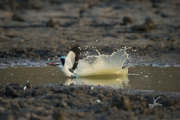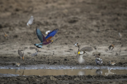 It got hotter and hotter each day. I positioned myself a few days at the drying out Chine Pool. Around November different birds arrive for the rainy season. One of them is the broad billed roller. He flies very fast over the water during the hottest time of the day. This is how he drinks. You can imagine, it’s not easy to take pictures of. Not only because it goes fast, but also considering you’ve got to wait for a long time in the boiling sun in the heat of the day and stay concentrated since you can miss it in a blink of an eye. The other bird is a woodland kingfisher who just made a dive to cool down and get some refreshment. I was a bit jealous from my extremely hot office that day! But nevertheless not a bad office at all…
