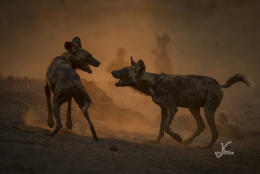Back in Mana Pools and so back in the game! One of the first days there, was this magical late afternoon with the dogs. I positioned myself against the light and when the dogs started playing, I was ready to play as well! To be honest, I’m very pleased with the result myself…