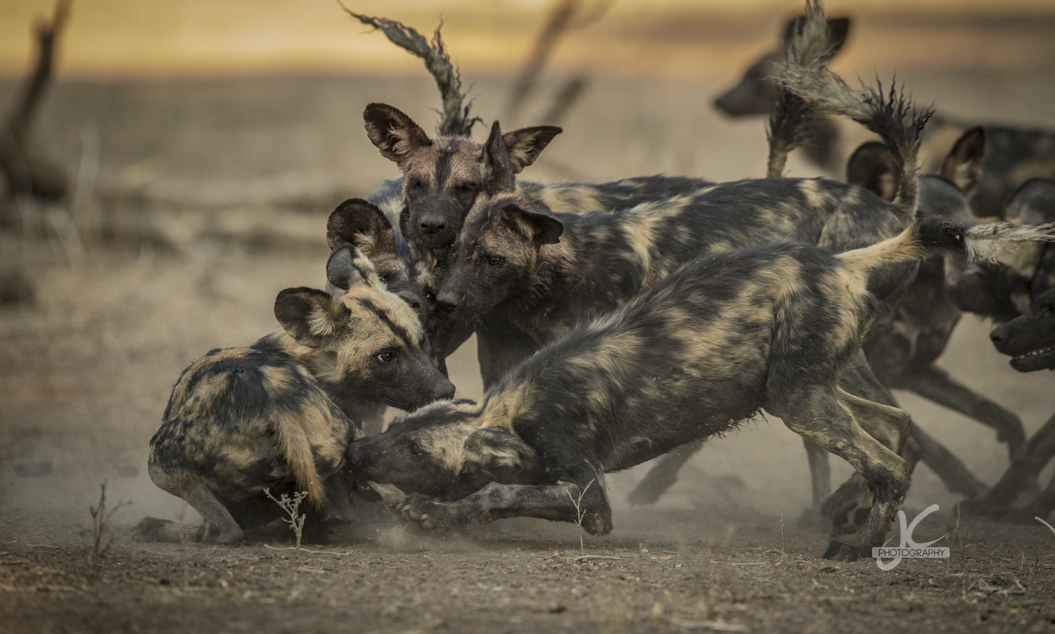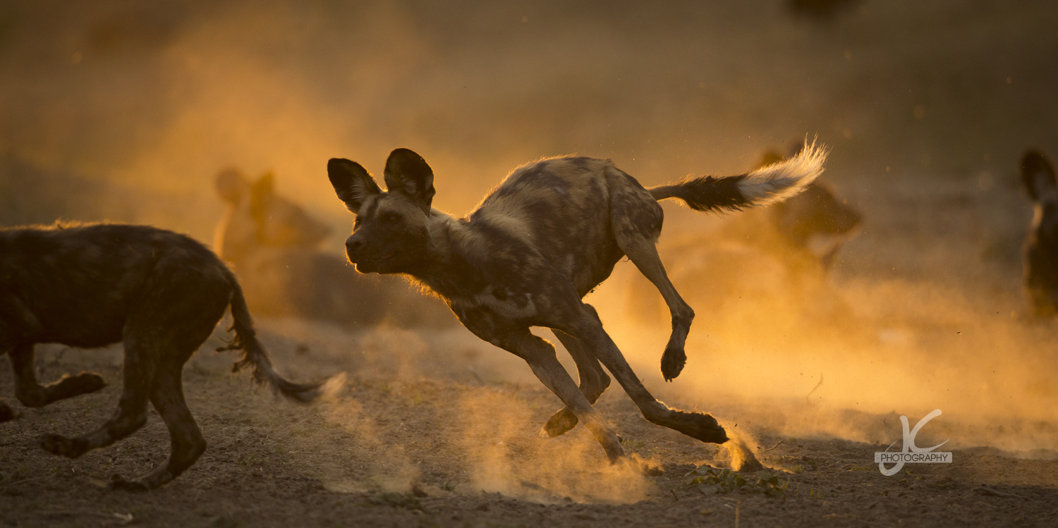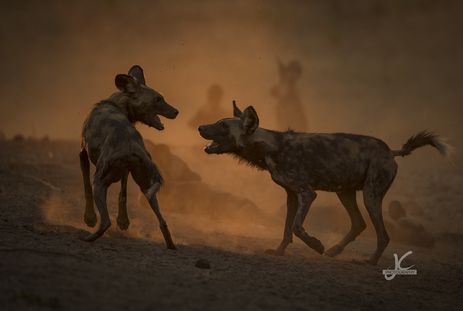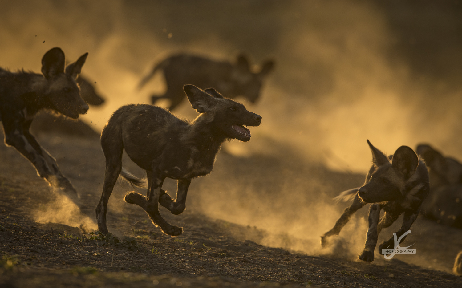 Back in Mana Pools and so back in the game! One of the first days there, was this magical late afternoon with the dogs. I positioned myself against the light and when the dogs started playing, I was ready to play as well! To be honest, I’m very pleased with the result myself…