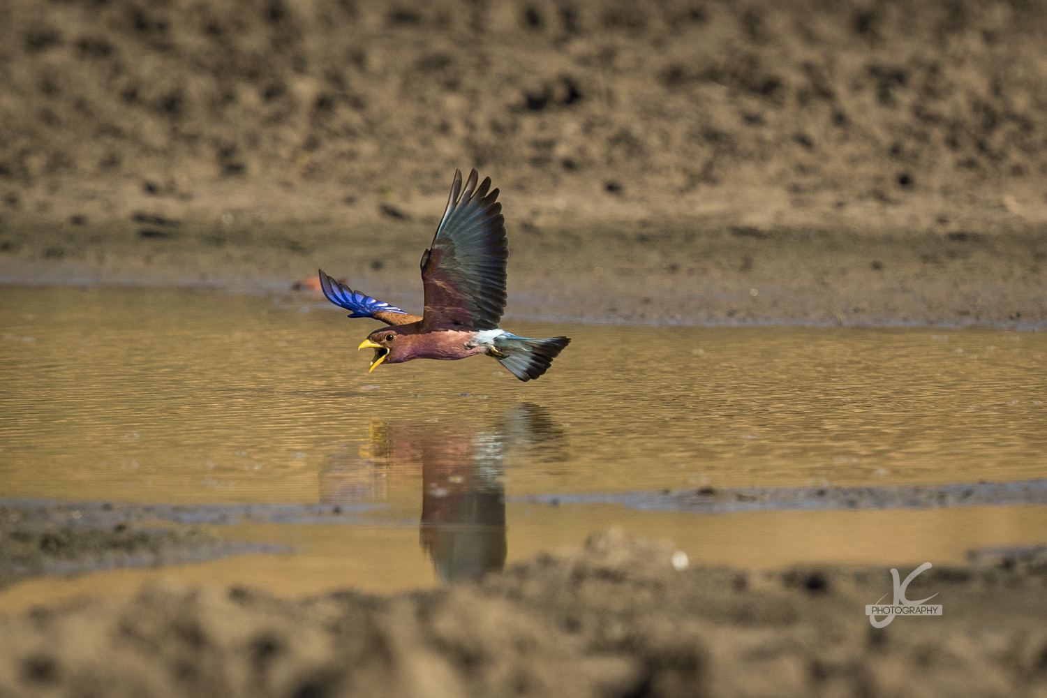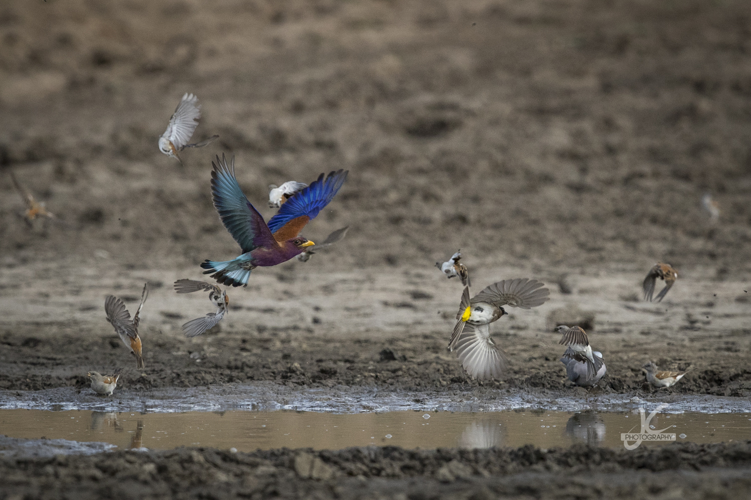 It got hotter and hotter each day. I positioned myself a few days at the drying out Chine Pool. Around November different birds arrive for the rainy season. One of them is the broad billed roller. He flies very fast over the water during the hottest time of the day. This is how he drinks. You can imagine, it’s not easy to take pictures of. Not only because it goes fast, but also considering you’ve got to wait for a long time in the boiling sun in the heat of the day and stay concentrated since you can miss it in a blink of an eye. The other bird is a woodland kingfisher who just made a dive to cool down and get some refreshment. I was a bit jealous from my extremely hot office that day! But nevertheless not a bad office at all…