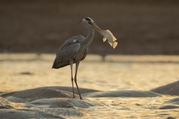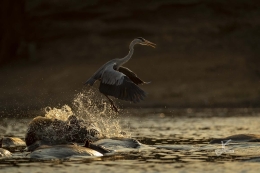 When we couldn’t find wild dogs or other action, we went down to one of the pools, since there are always things going on right there. A croc with a dragon fly on his head, hippos in the sunset, storks fishing from their backs, marabous trying to get the last fish, etc.
