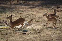 Since there is always some action going on, as you can see. Whether it’s dragon flies, birds, guinea fowls, crocodiles going for impala, wild dogs running around a group of eland, antelopes, a lion having a feast on a killed kudu or a successful croc and the end of a baboon. I hope it was the one messing up our tent…